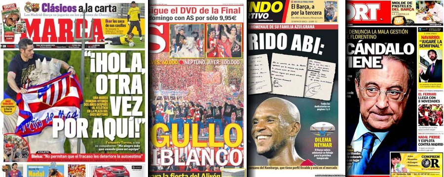 Portadas de las cuatro principales cabeceras de la prensa deportiva española.