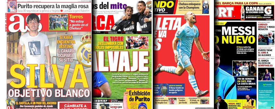Portadas de los cuatro principales cabeceras de la prensa deportiva española.