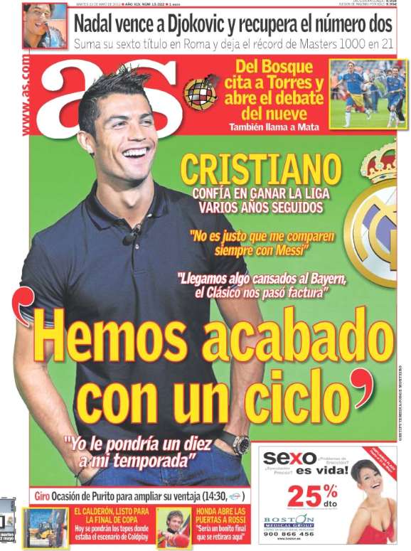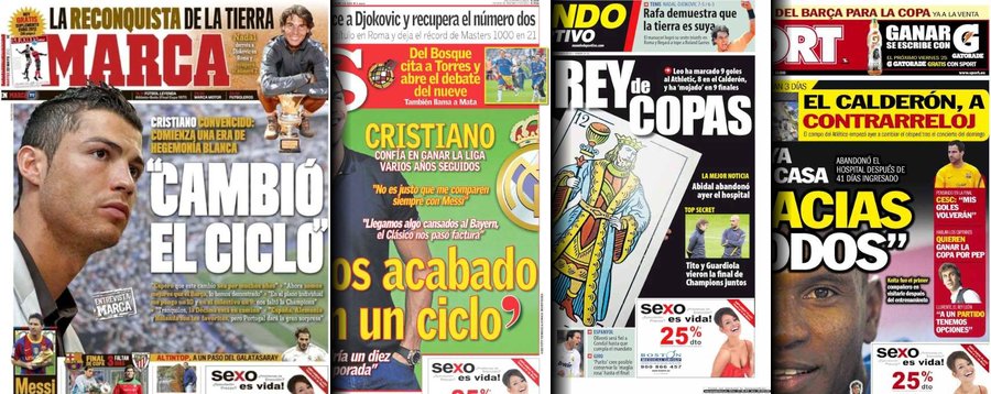 Portadas de las cuatro principales cabeceras de la prensa deportiva española.