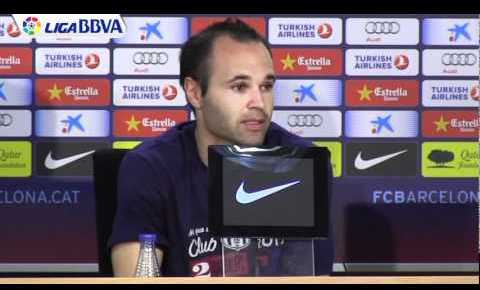 Andrés Iniesta compareció en rueda de prensa a 2 días de la final de la Copa del Rey, un partido que quieren ganar los culés para acabar la temporada con un título.