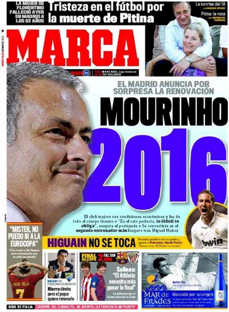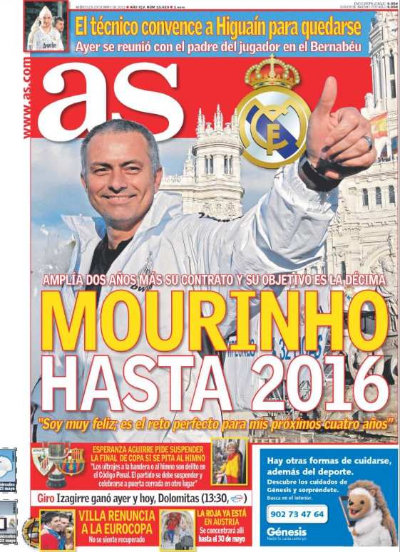Portadas de las cuatro principales cabeceras de la prensa deportiva española.
