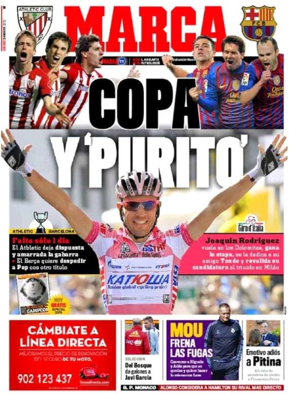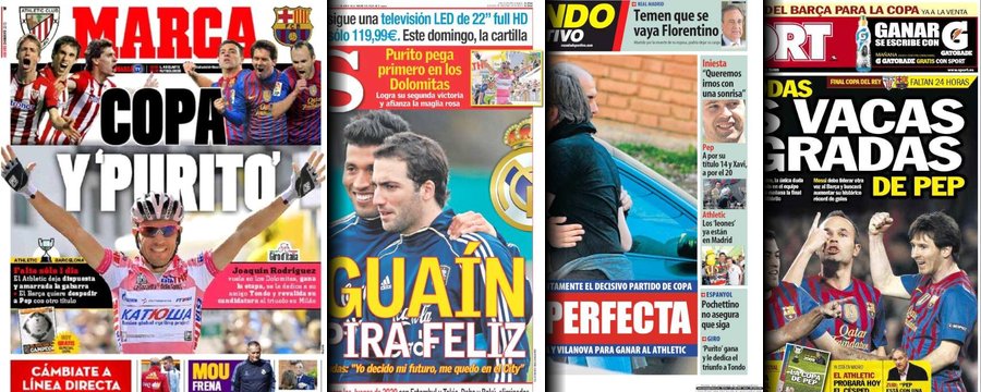 Portadas de las cuatro principales cabeceras de la prensa deportiva española.