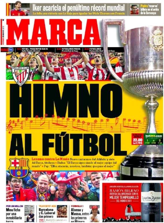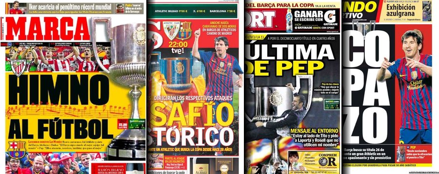 Portadas de las cuatro principales cabeceras de la prensa deportiva española.
