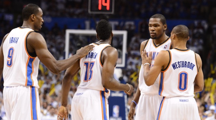 El escolta reserva James Harden aportó 11 puntos, pero al igual que Westbrook, no pudo estuvo inspirado en el juego de ataque y de no haber sido por Ibaka, Perkins y Collins, Durante se hubiese quedado sólo en la ofensiva. Los Thunder, que tuvieron un 56 (44-78) por ciento de acierto en los tiros de campo, tratan de convertirse en el decimoquinto equipo en la historia de la NBA en sobreponerse a un déficit de 0-2 en una serie a siete juegos, y el octavo desde el 2004.