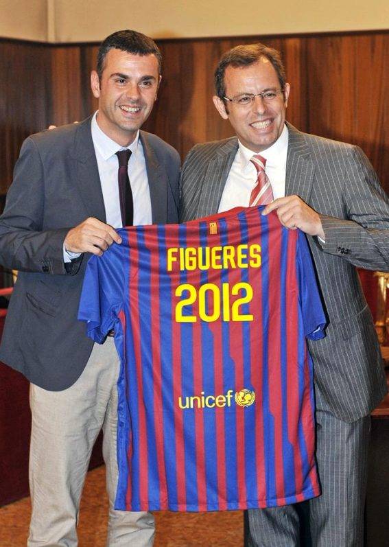 Sandro Rosell ha entregado al alcalde de la ciudad, Santi Vila, una camiseta del Barcelona con la inscripción Figueras 2012 y ha firmado en el libro de honor consistorial.