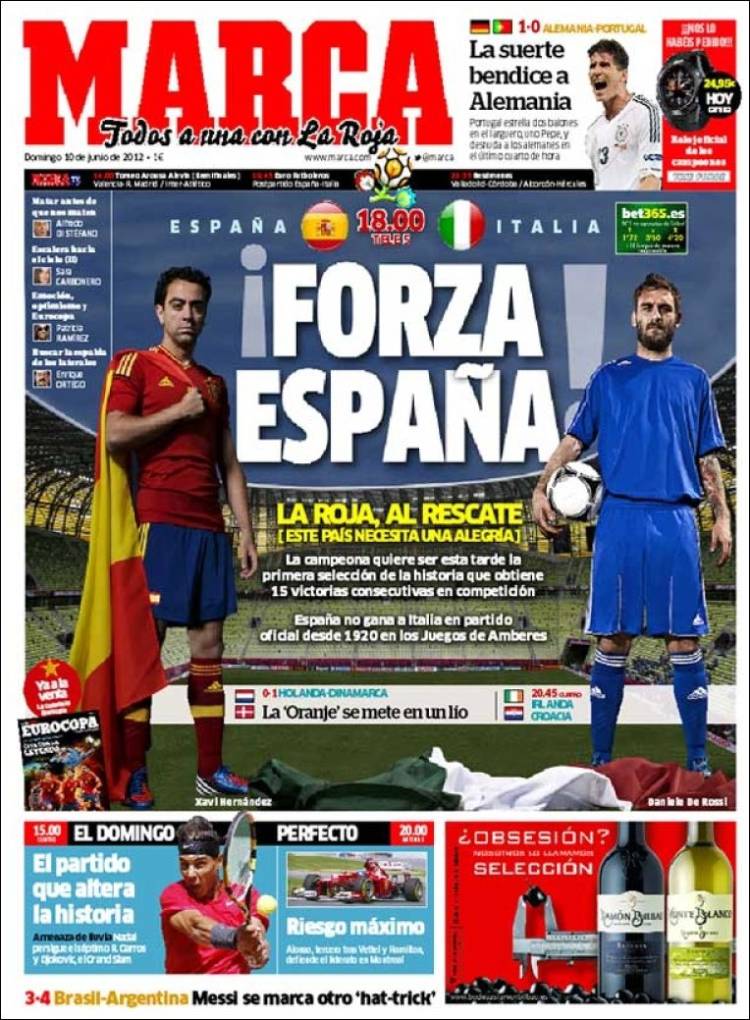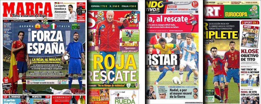 Portadas de las cuatro principales cabeceras de la prensa deportiva española.