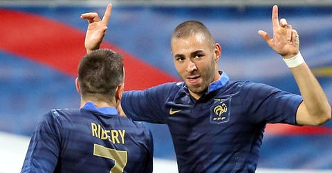 Francia: Lloris; Debuchy, Rami, Mexés, Evra; A. Diarrá, Cabaye, Malouda; Nasri, Ribery y Benzema.