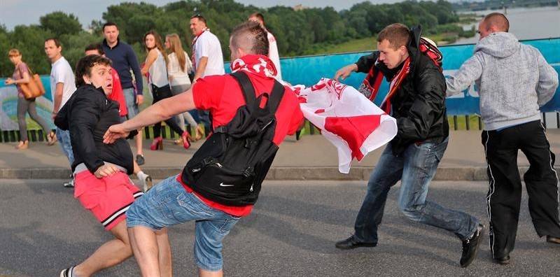 La fuerte escolta policial no pudo evitar que polacos y rusos se increpasen y que un centenar de aficionados se enzarzasen en una violenta pelea que acabó con varios heridos y detenciones, según informó la policía local.