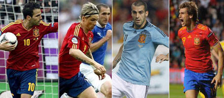 Sólo diez minutos después de haber marcado su gol, a los 73, Cesc fue sustituido por Fernando Torres. En los 17 minutos que estuvo en el césped del Arena Gdansk, el Niño dio más velocidad al juego de la selección española, aunque falló dos claras ocasiones de gol: primero, en un mano a mano en el que Buffon le ganó la partida con picardía e inteligencia; luego, al no levantar la cabeza y ver la entrada de Jesús Navas por la derecha. De haber recibido la pelota, el sevillano se hubiera quedado con toda la portería vacía para marcar. Pero Torres optó por una vaselina demasiado fuerte que acabó marchándose por encima del larguero.
