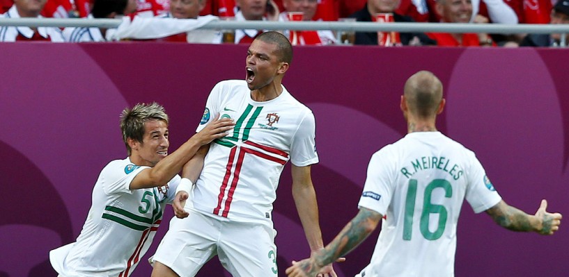 Portugal, con la obligación de sumar los tres puntos para tener alguna posibilidad de acceder a cuartos, salió algo tímida ante el dominio de Dinamarca. Poco a poco los lusos abrieron el campo y comenzaron a sucederse las ocasiones. Hélder Postiga forzó un córner tras un disparo que desvió Andersen. Joao Moutinho botó el balón desde la esquina y Pepe se adelantó al primer palo para rematar de forma fabulosa, anticipándose con rapidez a su marcador.