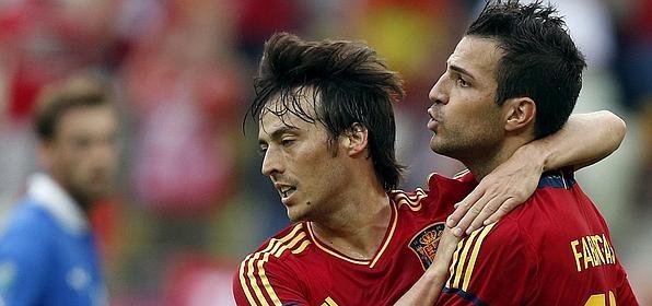 España: Casillas; Arbeloa, Piqué, Sergio Ramos, Jordi Alba; Busquets, Xabi Alonso, Xavi; Silva Iniesta; y Cesc Fábregas