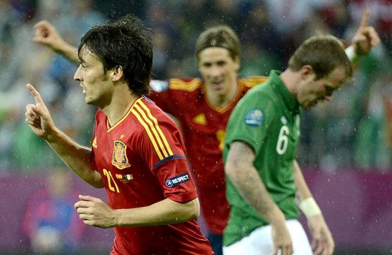 España ha hecho los deberes ante la débil Irlanda. Los campeones del mundo han sido muy superiores al conjunto de Giovanni Trapatonni, el rey del catenaccio, y han logrado un incontestable triunfo (4-0) que los sitúa con pie y medio en cuartos de final de la Eurocopa. Les basta a los españoles con un empate en la última jornada frente a Croacia para meterse en la ronda de los ocho mejores, mientras que el conjunto irlandés se convierte en la primera selección eliminada del torneo. En pleno debate sobre el nueve, apareció Fernando Torres, quien le ha ganado la partida a Cesc Fábregas en la pugna por la titularidad, y se reivindicó con dos goles. David Silva y Cesc Fábregas, quien había entrado después en lugar del propio delantero del Chelsea, se sumaron a la fiesta en la segunda mitad.