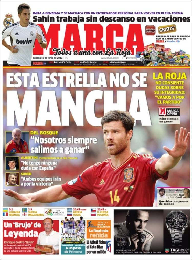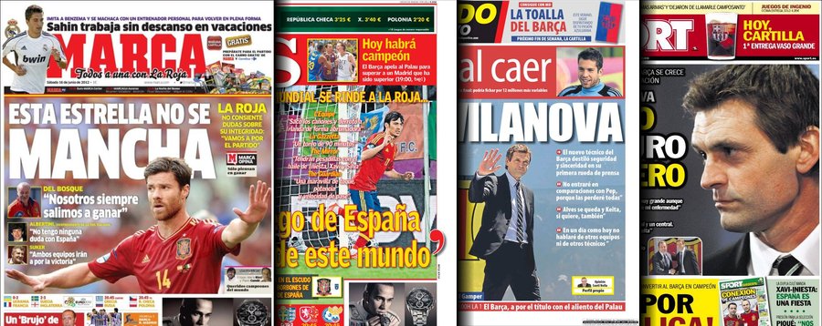 Portadas de las cuatro principales cabeceras de la prensa deportiva española.