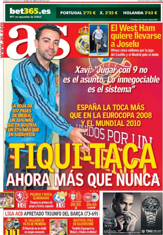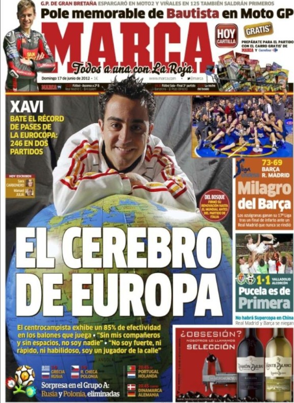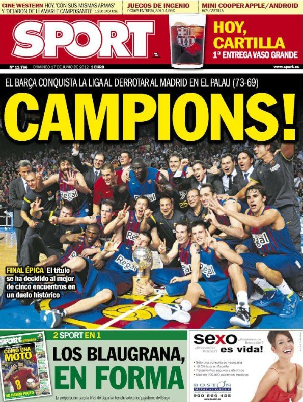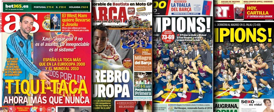Portadas de las cuatro principales cabeceras de la prensa deportiva española.