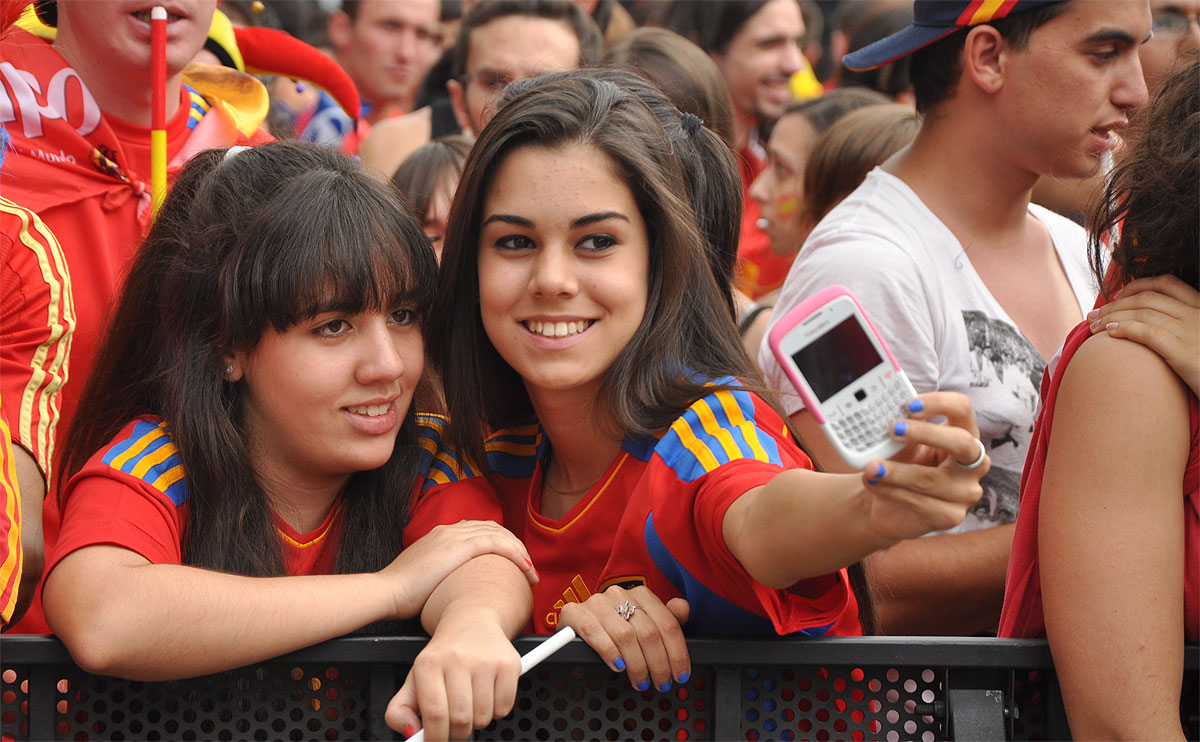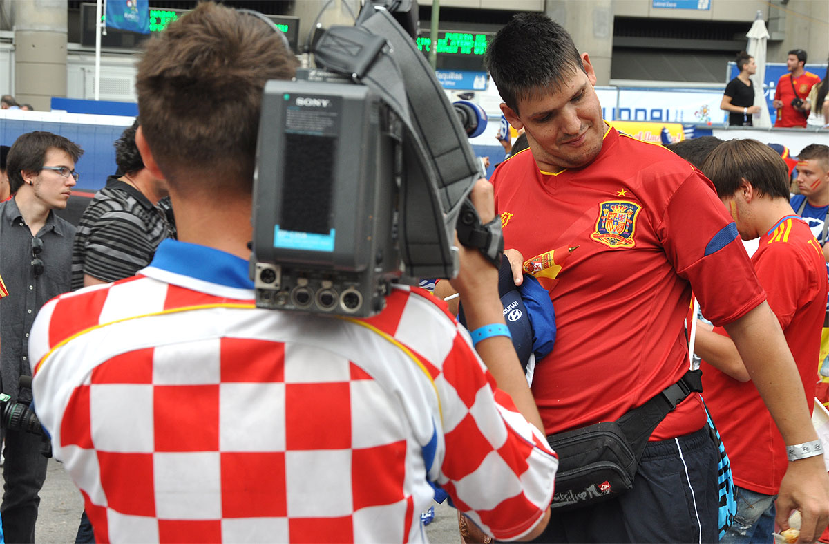 Un cámara de la televisión croata captando el ambiente de la afición española.