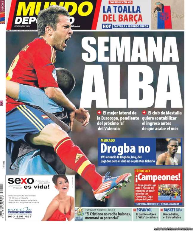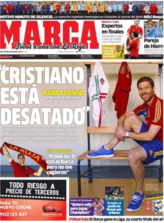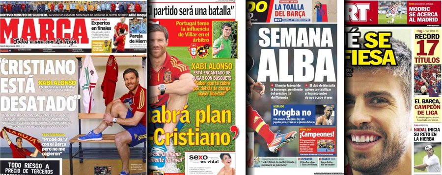 Portadas de las cuatro principales cabeceras de la prensa deportiva española.