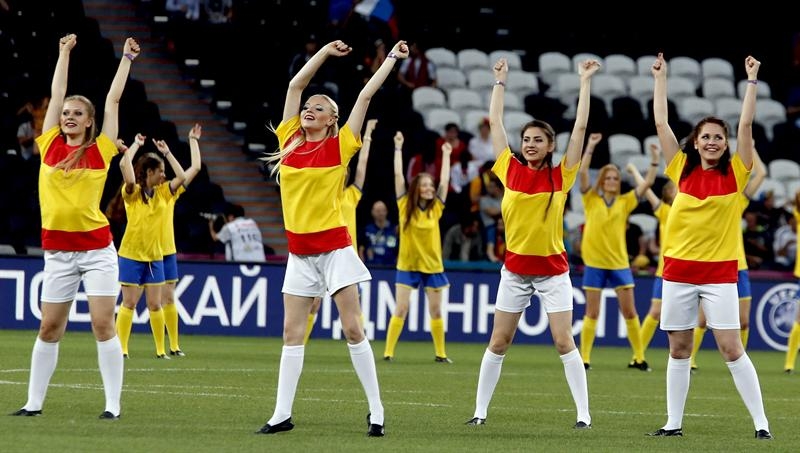 Un grupo de animadoras antes del inicio del partido entre España y Portugal.