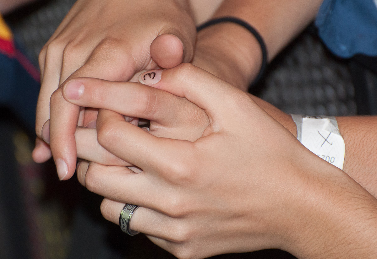 Una pareja mantenía sus manos unidas en los últimos minutos del partido