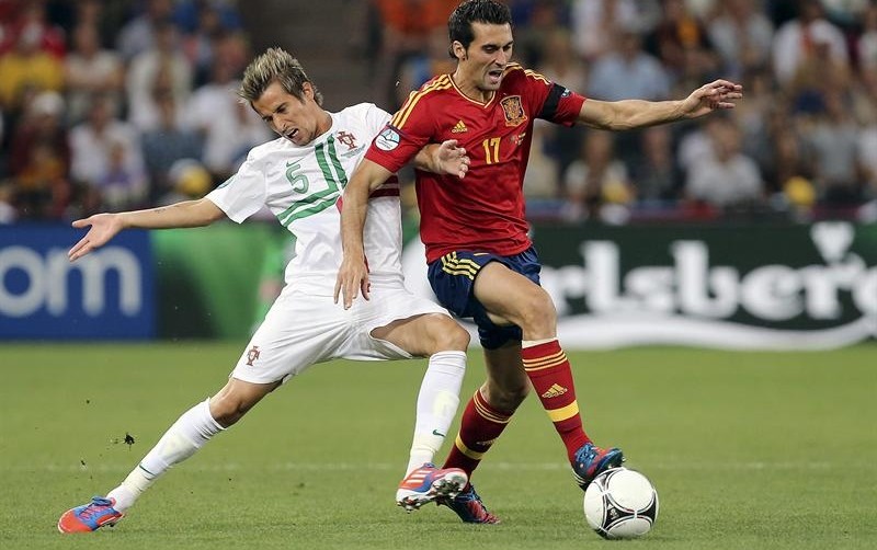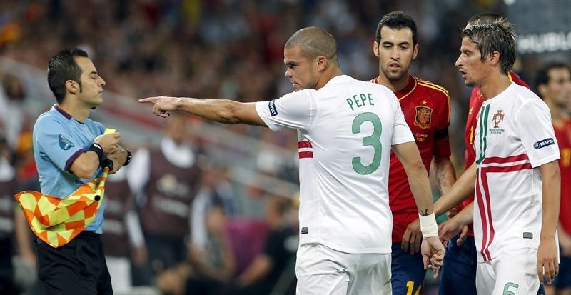 El lateral de Portugal vio la amarilla por tocarse los genitales en un gesto dedicado al banquillo de España.