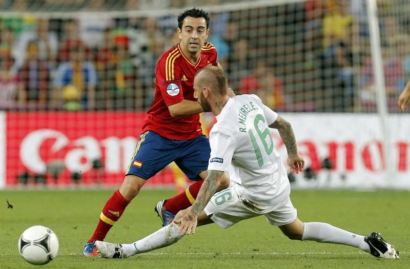 La mejor ocasión para España en la primera parte la tuvo Arbeloa, pero remató alto desde la frontal.