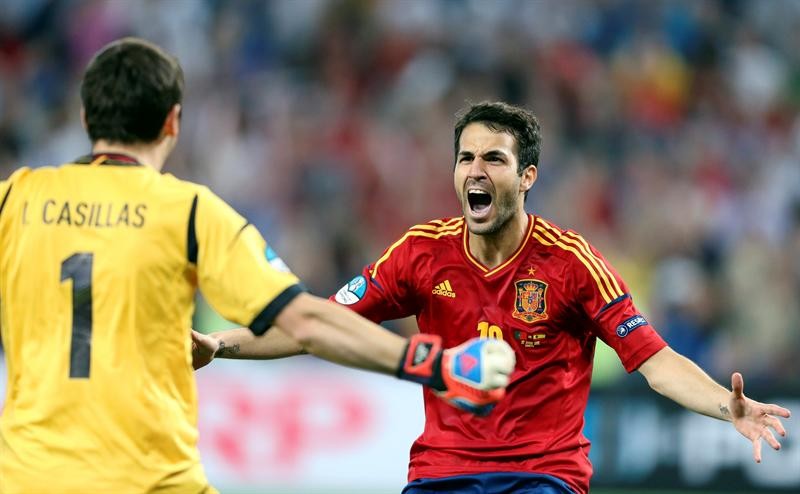 Casillas y Cesc se abrazan tras la clasificación para la final