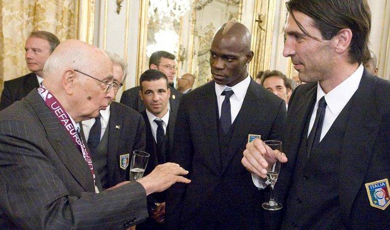 La selección italiana llegaba al aeropuerto romano de Fiumicino, tras la derrota encajada en la final de la Eurocopa ante España por 4-0, y fue acogida con los aplausos de un millar de aficionados que acudieron al aeródromo para recibir a los subcampeones de Europa. Los jugadores de la azzurra agradecieron el ánimo recibido por parte de los seguidores pese a la derrota en el Olímpico de Kiev y se dirigieron al palacio del Quirinal, donde fueron recibidos por el jefe del Estado, Giorgio Napolitano.