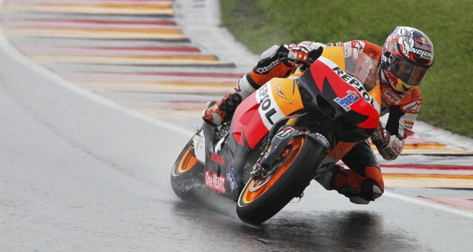 Stoner se encargó de 'capitanear' el trepidante rumbo final que tomaron los entrenamientos oficiales de MotoGP bajo una tormenta constante que obligó a los pilotos a detenerse en sus talleres durante algunos minutos para esperar a que escampara. En la primera mitad de las pruebas oficiales fue Stefan Bradl (Honda RC 213 V) el encargado de marcar el ritmo para todos sus rivales, pero el desarrollo final de los entrenamientos iba a ser muy distinto.