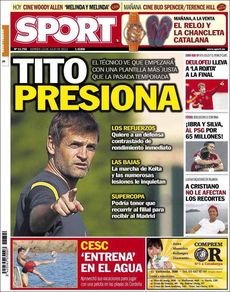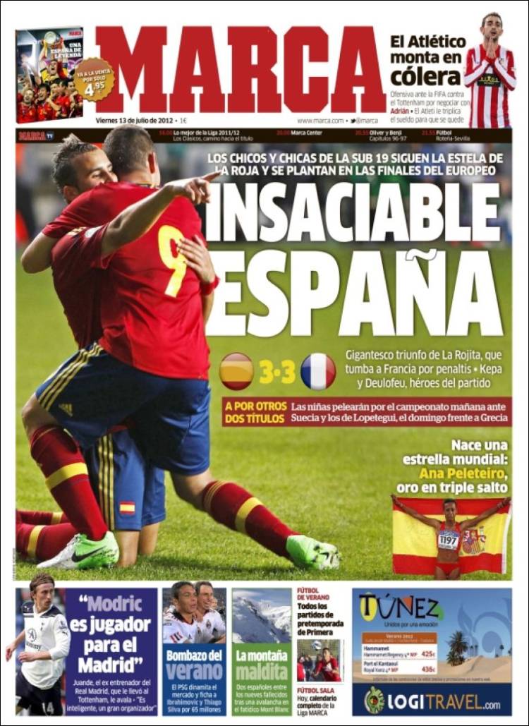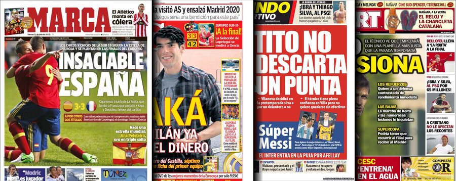 Portadas de las cuatro principales cabeceras de la prensa deportiva española.