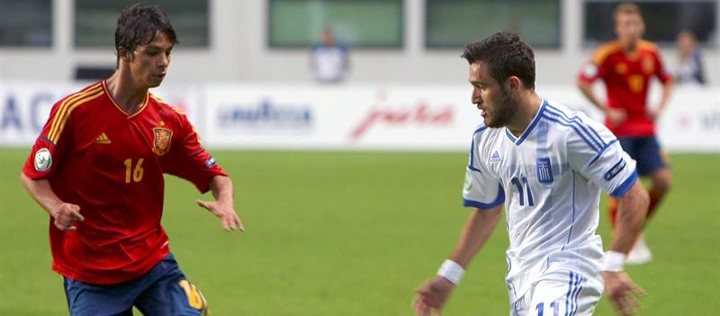 España creaba peligro especialmente por las bandas, donde Deulofeu y Jesé eran un auténtico quebradero de cabeza para la zaga helena. Sólo faltaba el gol. El portero griego, Dioudis, estaba siendo el héroe del partido al detener cada ofensiva del conjunto español. Si no era el meta, España se topaba con el larguero, como en el disparo del sevillista Campaña a los diez minutos de la segunda parte.