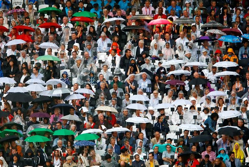 La lluvia, como se esperaba, hizo acto de presencia en los primeros minutos del espectáculo.
