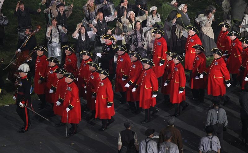 La ceremonia comenzó repasando la historia del Reino Unido y, cómo no, partió desde la tradicional campiña británica.