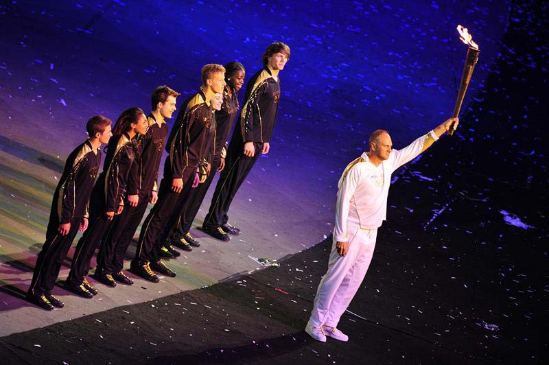 Steve Redrave, el mejor atleta olímpico de la historia de Inglaterra, fue el encargado de hacerles llegar el fuego a los siete jóvenes.