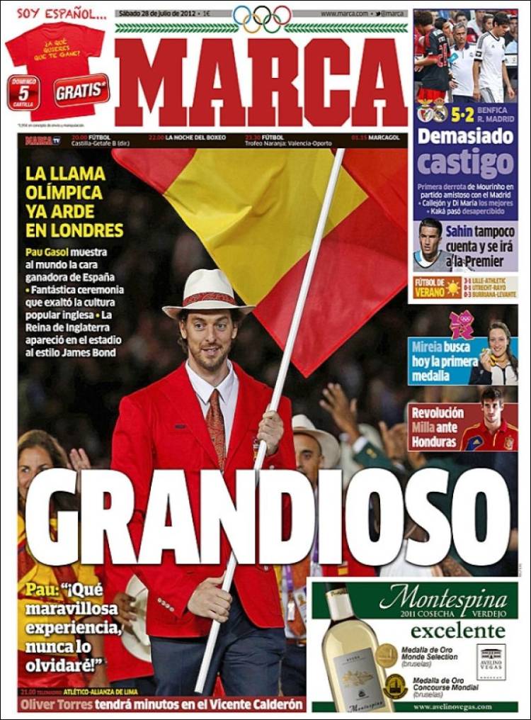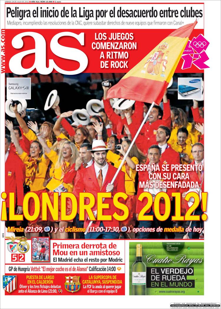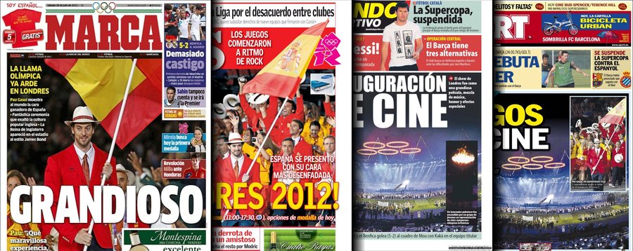 Portadas de las cuatro principales cabeceras de la prensa deportiva española.