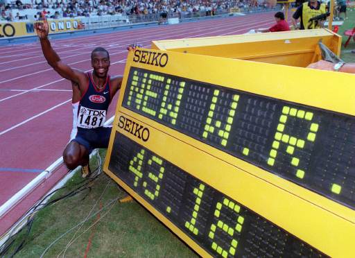Michael Johnson - 43,18 - 26 de agosto de 1999 Sin duda otro de los nombres míticos del atletismo de finales del S XX, Michael Johnson logró récords estratosféricos de 200 y de 400 metros lisos. El primero, superando a un mito como Mennea y siendo superado por otro: Usain Bolt. El impresionante récord que estableció en los mundiales de Sevilla sigue en vigor y parece que lo seguirá durante mucho tiempo