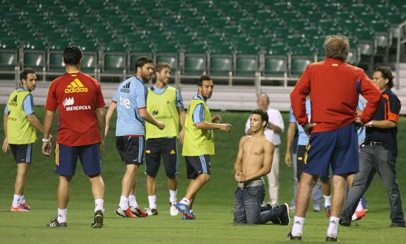 Los internacionales españoles admitieron este lunes, a su llegada al Aeropuerto Internacional Luis Muñoz Marín en San Juan, que el escenario del partido no era ni mucho menos el ideal, teniendo en cuenta que el próximo fin de semana comienza la Liga. Los rostros de los jugadores denotaban el cansancio tras ocho horas de viaje desde Barajas. Sólo los futbolistas del Real Madrid –Casillas, Sergio Ramos, Arbeloa, Albiol y Xabi Alonso– evitaron la paliza al viajar directos desde Filadelfia, una vez finalizada la gira del equipo blanco en Estados Unidos.