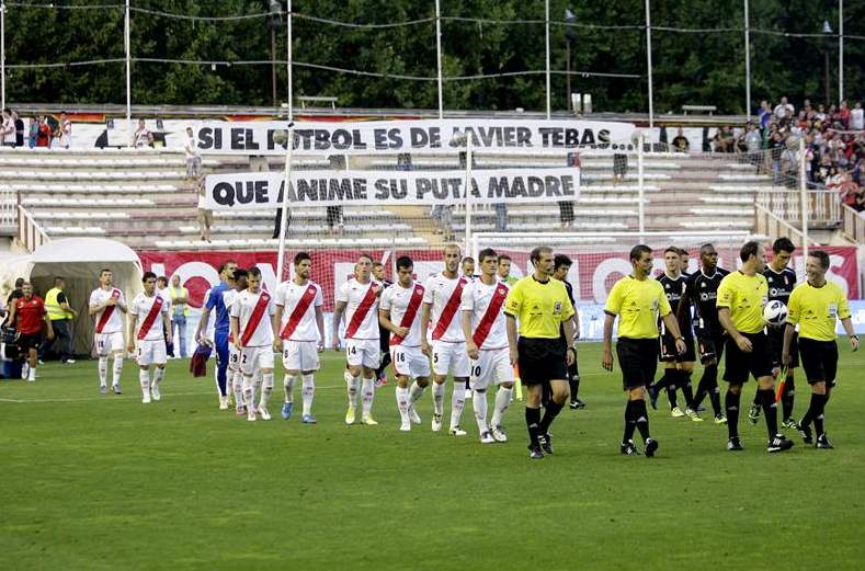 En el estadio madrileño se podía leer una pancarta que arremetía directamente contra el vicepresidente de la LFP, que además es asesor cercano al presidente del Rayo, Raúl Martín Presa. "Si el fútbol es de Javier Tebas... que anime su puta madre", se podía leer. "Odio al fútbol moderno, odio a la televisión", rezaba otra pancarta, en gallego, en Riazor.