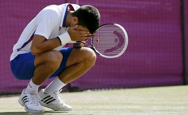 El tenista serbio Novak Djokovic serró sus raquetas de rabia después del último partido en los Juegos Olímpicos de Londres, en el que perdió la medalla de bronce ante el argentino Juan Martín del Potro por 7-5 y 6-4.