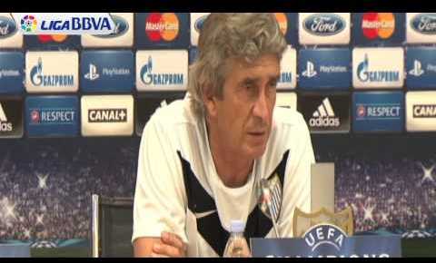 El entrenador del Málaga, Manuel Pellegrini, ha atendido a la prensa en la previa de la ida del playoff de la Champions, este miércoles frente al Panathinaikos en La Rosaleda.