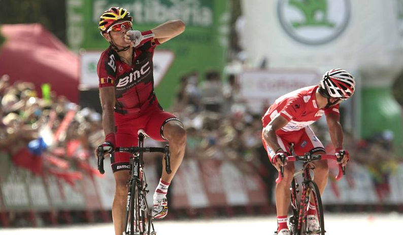 Contador lo volvió a intentar a falta de 5,2 kilómetros, pero el madrileño no logra despegarse de sus rivales en esta Vuelta. Le falta la contundencia de antaño. Fue cazado y luego no pudo responder a la iniciativa de Purito y Gilbert. Tampoco estuvo atento Valverde, mal colocado, pero al menos el murciano entró en el primer grupo a nueve segundos, por delante de Contador y Froome, a quien vio "algo clavado" en la subida.