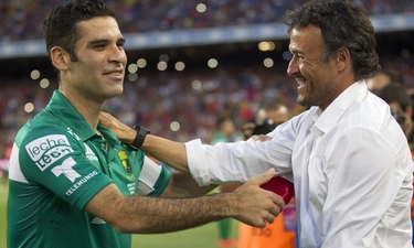 Rafa Márquez saluda a Luis Enrique en los prolegómenos del partido. | EFE