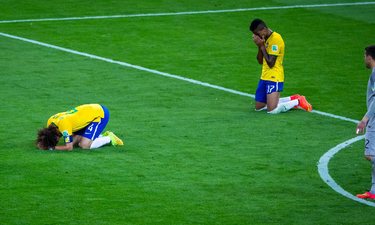 Luiz Gustavo rezando, junto a David Luiz, de rodillas. | Cordon Press