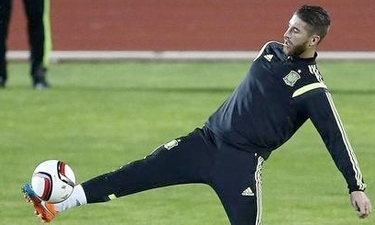 Sergio Ramos, durante un entrenamiento con la selección española. |