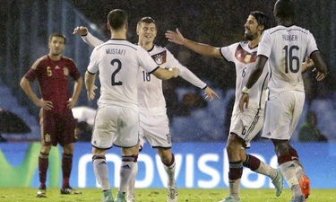 Toni Kroos es felicitado por su gol a la selección española. | EFE