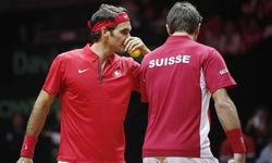 Roger Federer da instrucciones a Wawrinka durante el partido de dobles. | EFE Ganan el dobles a Benneteau y Gasquet Federer y Wawrinka acercan a Suiza a su primera Ensaladera Complicado triángulo en el tenis suizo