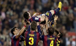 Leo Messi, manteado tras superar el récord de Zarra. | EFE Supera el récord de Zarra (5-1) Un Messi de leyenda se da un festín ante el Sevilla Guillermo Domínguez 1 NARRACIÓN
