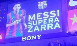 Pantalla del Camp Nou con el récord de Leo Messi. Pitos para Bartomeu y Zubizarreta Leo Messi supera a Zarra pero la Liga no le hace homenaje
