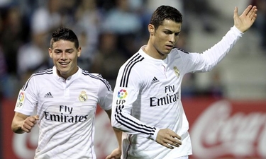 Cristiano Ronaldo (d) celebra junto a James uno de sus dos goles al Eibar. | EFE Goleada al Éibar (0-4) El Madrid es una garantía Sergio Valentín 1 Ronaldo hizo doblete. Ancelotti apostó y ganó al poner a Isco. Gol ilegal de James en el 0-1. Fiabilidad 100% del Real Madrid. NARRACIÓN