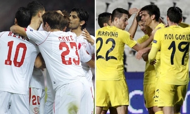 Los jugadores del Sevilla y del Villarreal, durante sus partidos de la Europa League. | EFE
