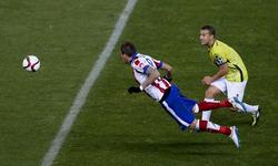 Mandzukic marca el segundo de cabeza. | EFE Alcaraz y Mandzukic, goleadores El Atlético no puede con el Hospitalet antes del derbi David Vinuesa