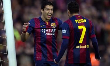Luis Suárez celebra un gol con Pedro | EFE Doblete de Messi al Córdoba (5-0) Manita al tran tran y a uno del Madrid El equipo de Luis Enrique cierra el año con más goles que fútbol. Messi hizo un doblete y despide 2014 con 58 dianas. NARRACIÓN, por JM Puertas